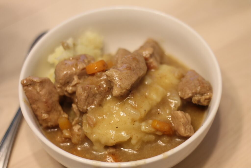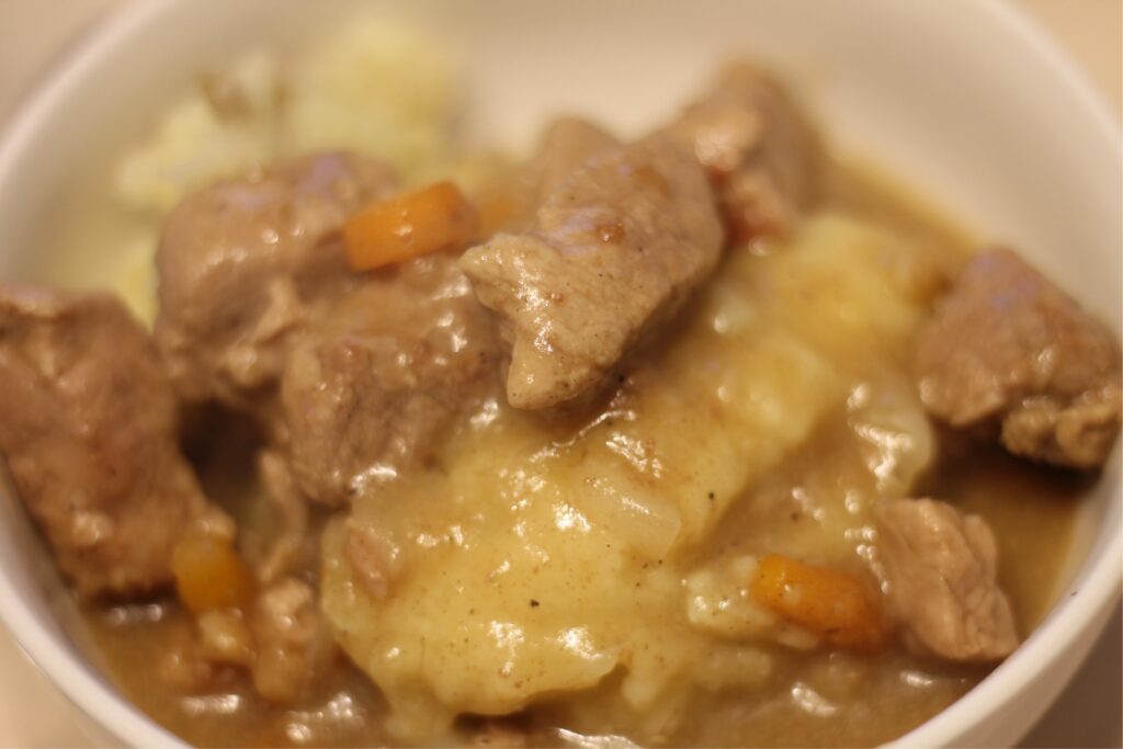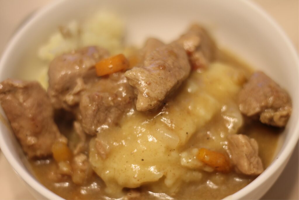 - Simmer: Cover with lid, reduce heat to low, and simmer gently for up to 2 hours, until pork is fork-tender. Stir occasionally and check gravy consistency—add a splash more broth if too thick.