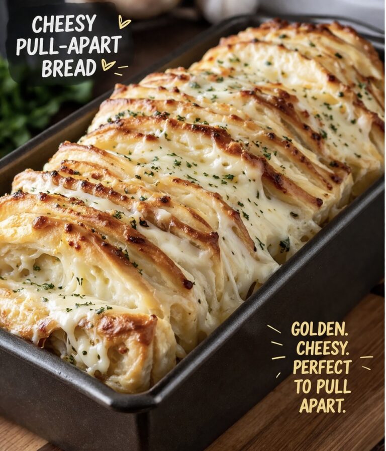 There’s something incredibly satisfying about bread you can literally pull apart with your hands. It’s warm, soft, cheesy, and layered with flavor in every bite. This cheesy pull-apart bread takes things up a notch with a simple but genius technique: instead of rolling or stuffing, you layer butter, garlic, and cheese over rolled dough, cut it into squares, stack it, and bake it upright in a loaf pan. The result is a beautifully structured loaf with pull-apart layers running across the pan—perfectly golden on top and irresistibly gooey inside.
