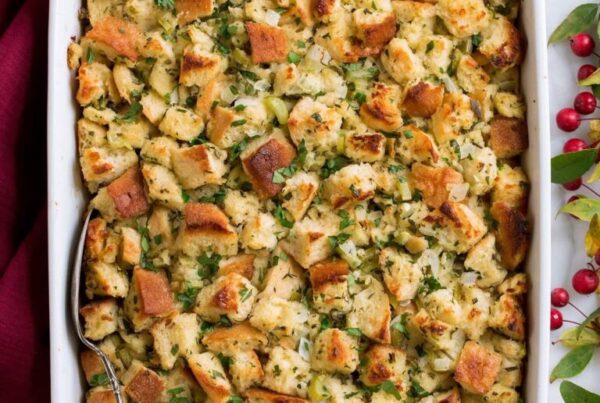 Savory Stuffing Allergy friendly, Golden-baked and bursting with flavor, our savory stuffing starts with toasted bread cubes tossed in sautéed onions, garlic, and celery. We blend in fresh sage, thyme, and rosemary, then drizzle in rich broth for the perfect balance of crisp and tender. It’s the ultimate cozy side—rustic, aromatic, and impossible to resist. History of Stuffing Ancient Origins: Where Stuffing Began Stuffing boasts…